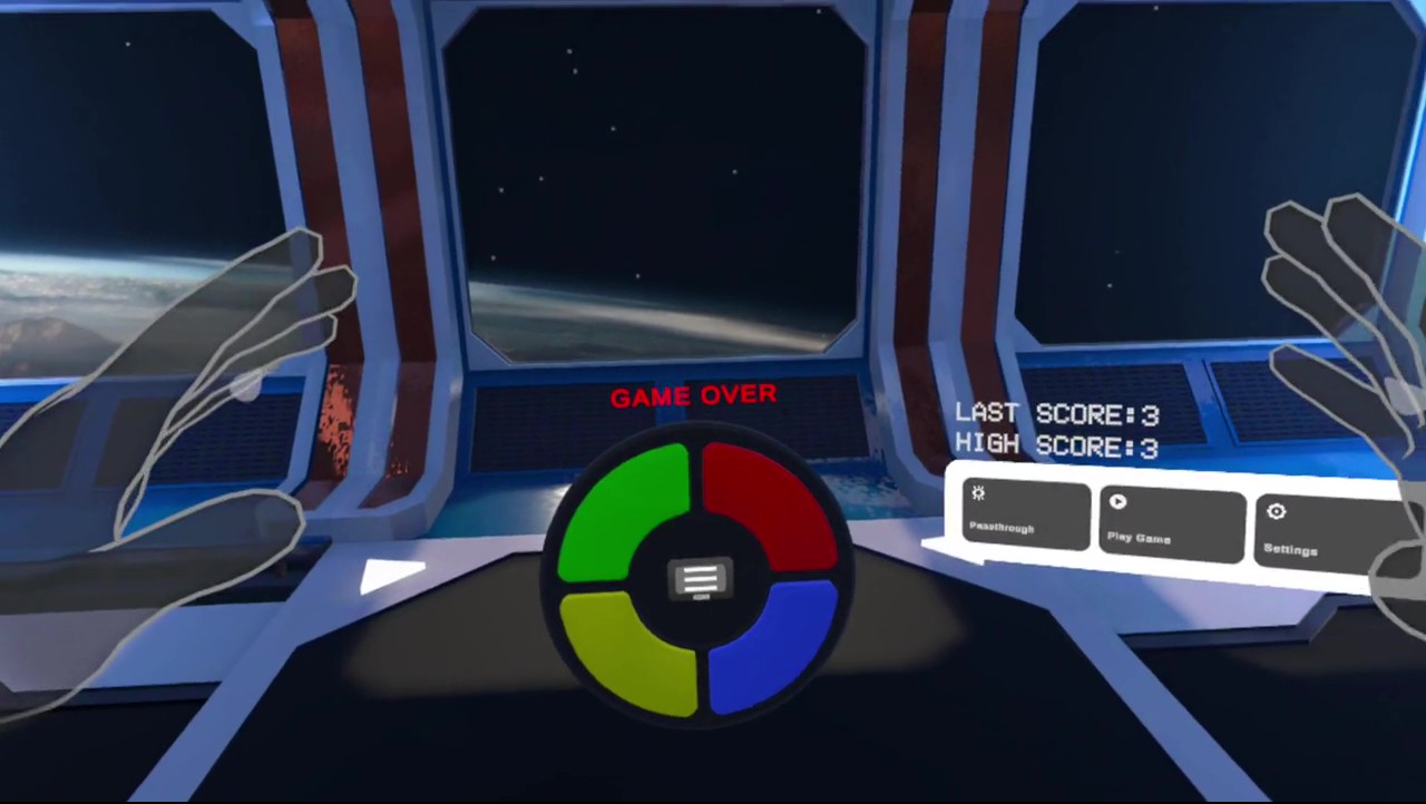 Mixed Reality Memory is a VR/MR reimagining of the classic Simon memory game. Players test and improve their memory by repeating the color sequences in either a stylized virtual environment or directly within their own physical space using passthrough mixed reality.